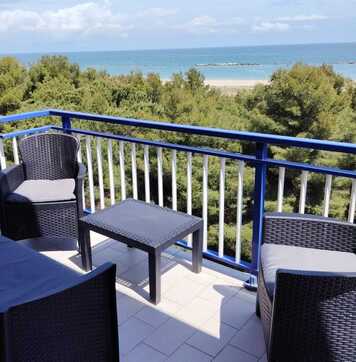 Il nostro appartamento a 50 metri dal mare, Convenzionato con lido la vela ombrellone con una sdraio e un lettino.